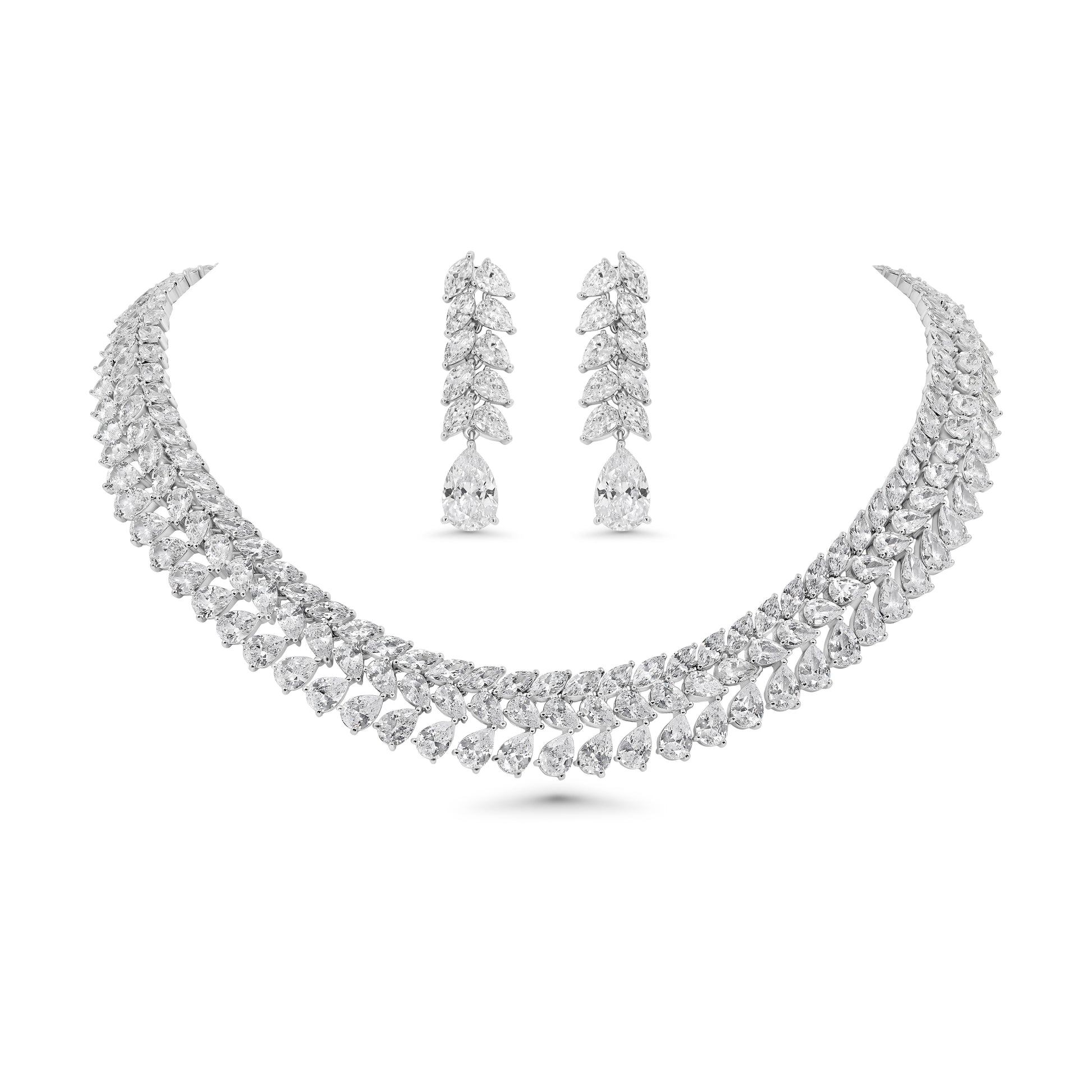 Introducing Cassandra, a stunning jewelry piece designed to be a timeless staple in your collection. Adorned with an array of luminous white stones, this elegant design radiates a soft, refined brilliance. Perfect for everyday wear or special occasions embodying grace and understated beauty for the modern woman. Complemented with matching earrings.