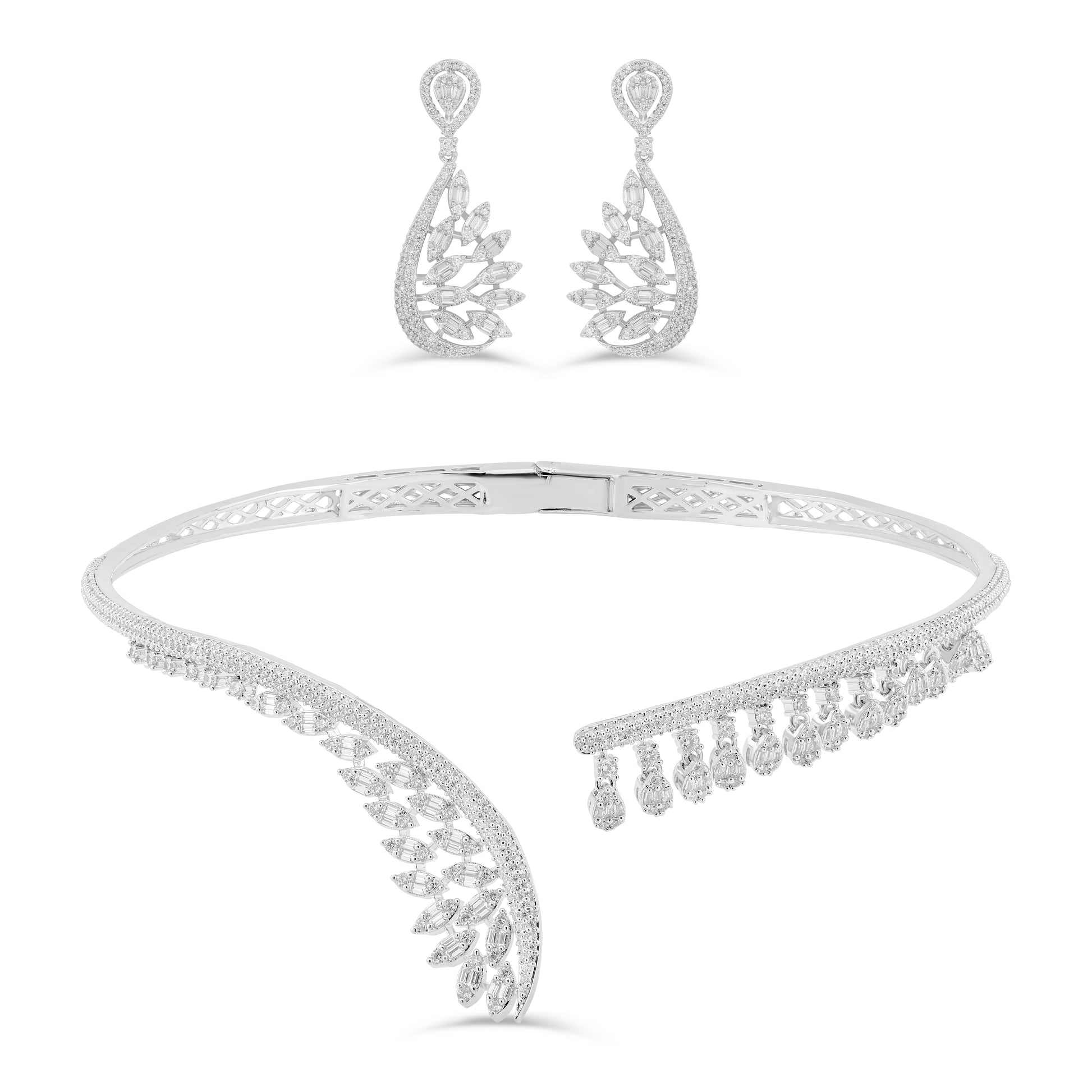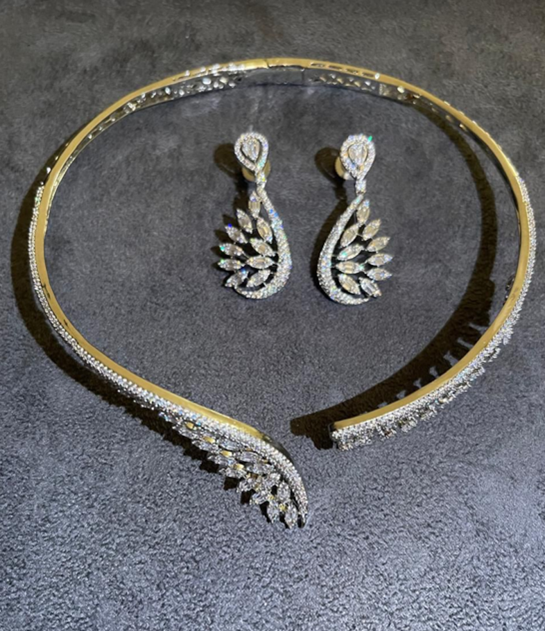 The Epis de Fleur Set is a graceful ode to nature’s delicate beauty. Inspired by the soft bloom of petals and the gentle sway of serene fields, this choker necklace set with earrings embodies refined charm and elegance. Its intricate design reflects the natural curves and textures of flora, while radiant stones shimmer with a gentle, understated brilliance. Epis de Fleur captures the essence of organic sophistication, seamlessly blending natural artistry with timeless allure.