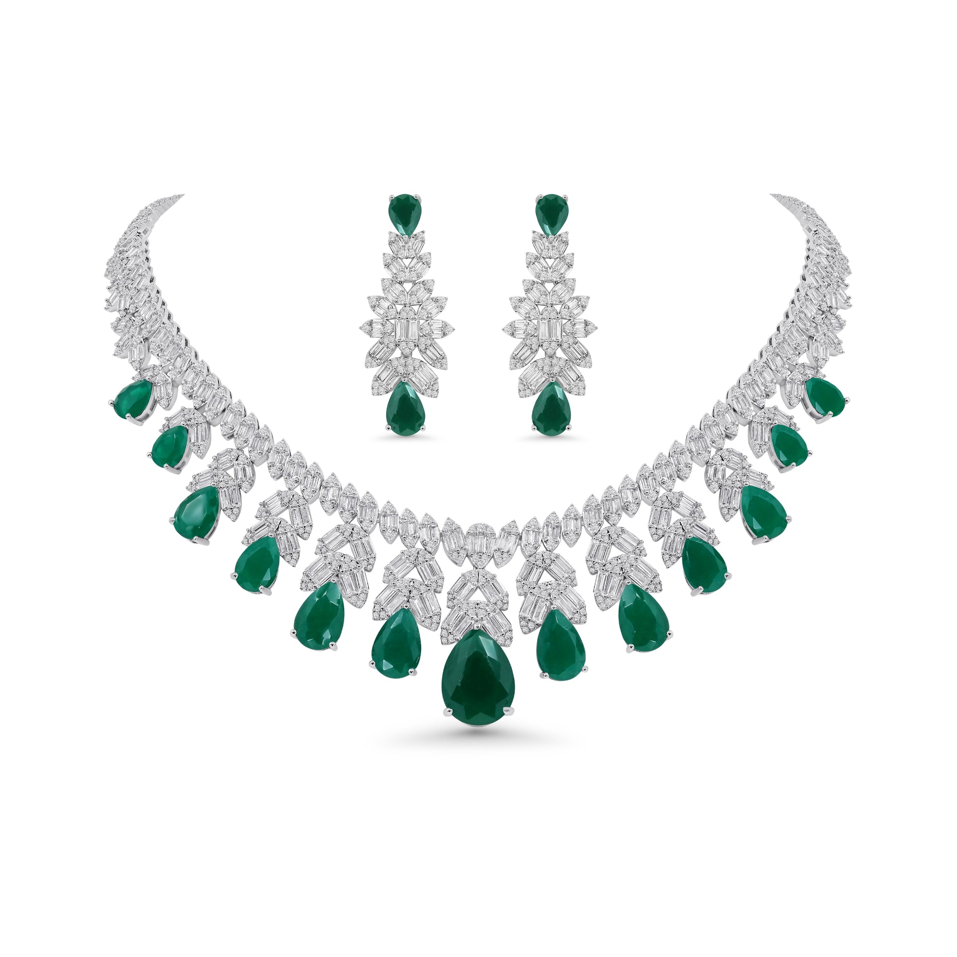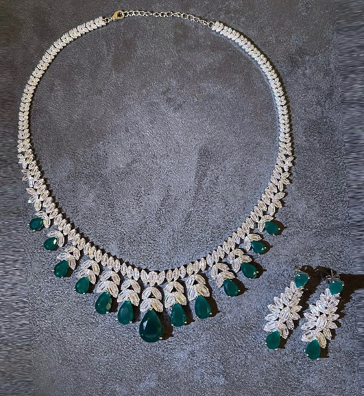Introducing Verde, a captivating jewelry set that channels the lush elegance of verdant landscapes. The necklace features a striking natural green stones. The matching earrings echo this refined design, with the same vibrant green stones creating a harmonious look. Verde captures the essence of nature’s rich hues and timeless elegance, offering a touch of serene luxury. This set brings a refreshing and sophisticated charm to any occasion.